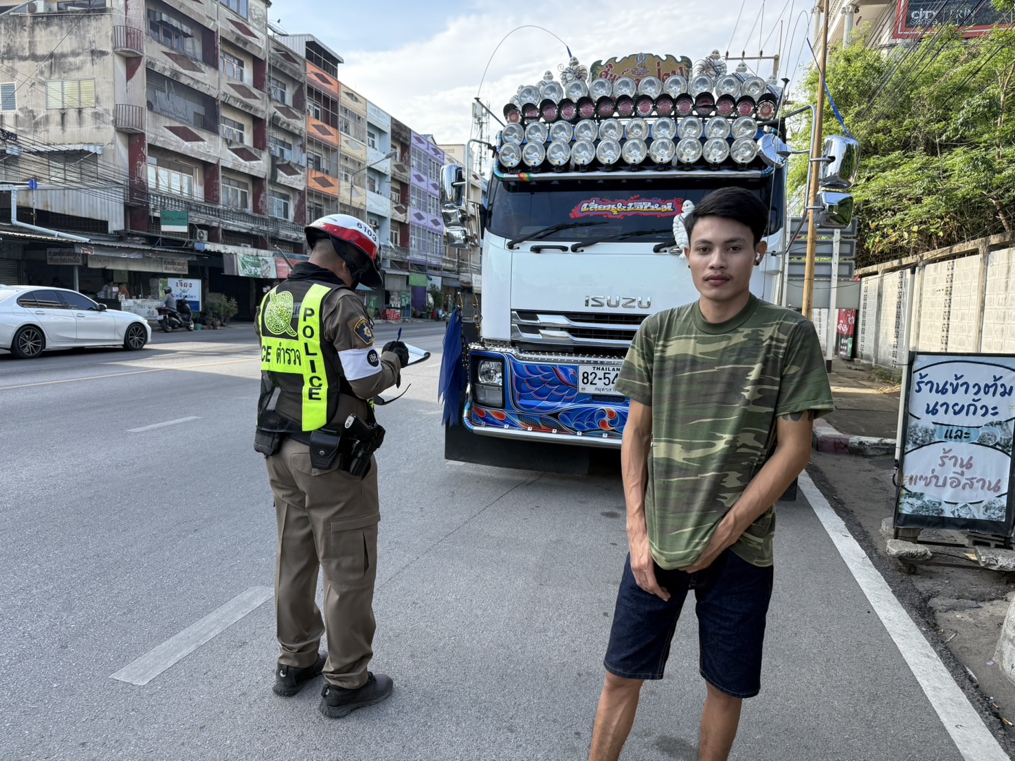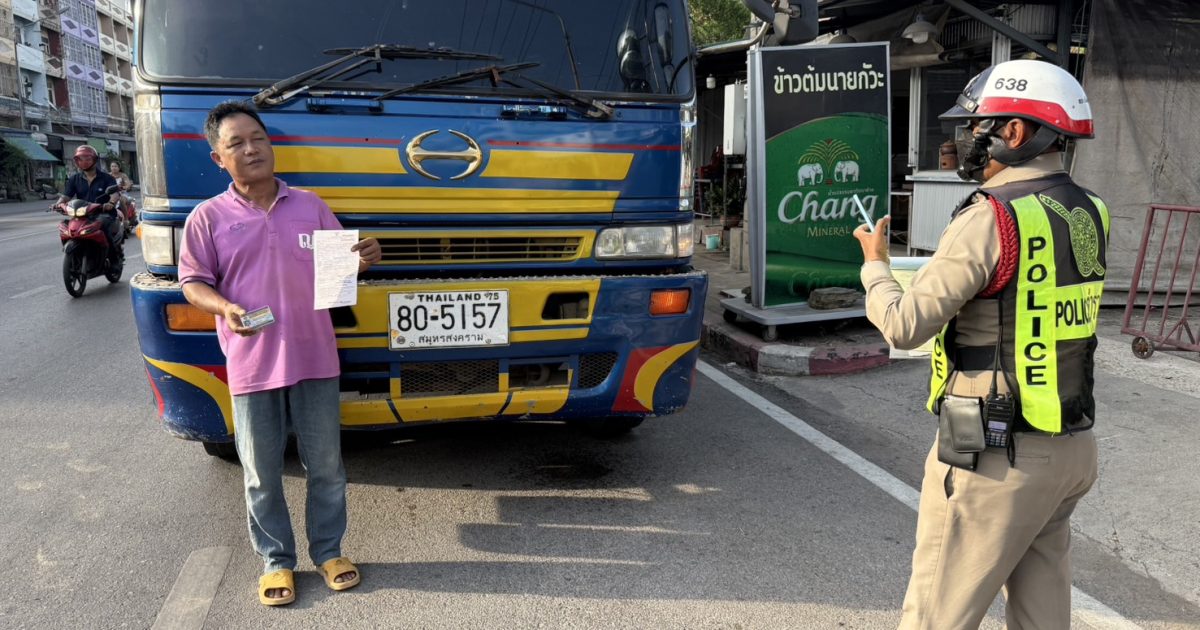 ร.ต.อ.นิติธร คงมา รอง สว.จร.สภเมืองสมุทรสาคร (เมือง 601)พร้อมกำลังว.4 -กวดขันวินัยจราจร รถบรรทุกสิบล้อขึ้นไป เดินรถเวลาห้าม