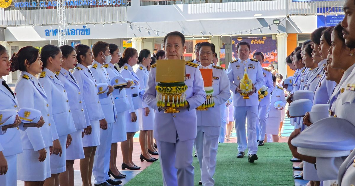 วันที่ 17 ม.ค. 2568 เวลา 11.00 น. พ.ต.อ.พิเชษฐ์พงศ์ แจ้งค้ายคม ผกก.สภ.เมืองสมุทรสาคร,พ.ต.ต.สุจิน เสนาสนะ สวป.(ชส.)สภ.เมืองสมุทรสาคร พร้อมด้วยเจ้าหน้าที่จราจร ร่วมพิธีแห่อัญเชิญรางวัลสถานศึกษาพระราชทาน ระดับก่อนประถมศึกษาและระดับประถมศึกษา 2 ปี ต่อเนื่อง ณ โรงเรียนเอกชัย ต.มหาชัย อ.เมืองสมุทรสาคร จ.สมุทรสาคร โดยมี นาย นริศ นิรามัยวงศ์ ผวจ.สมุทรสาคร เป็นประธานในพิธี