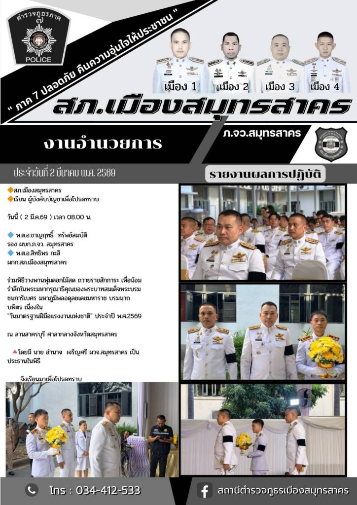 🔶สภ.เมืองสมุทรสาคร🔶เรียน ผู้บังคับบัญชาเพื่อโปรดทราบ