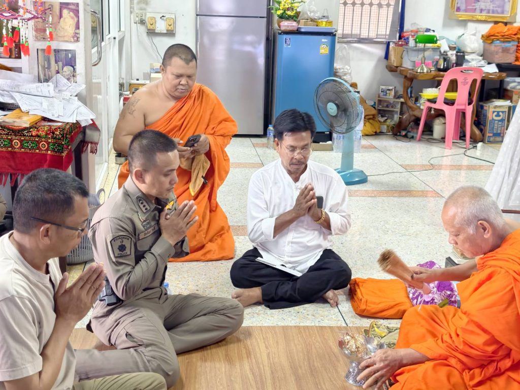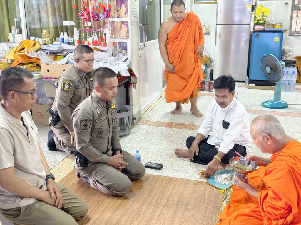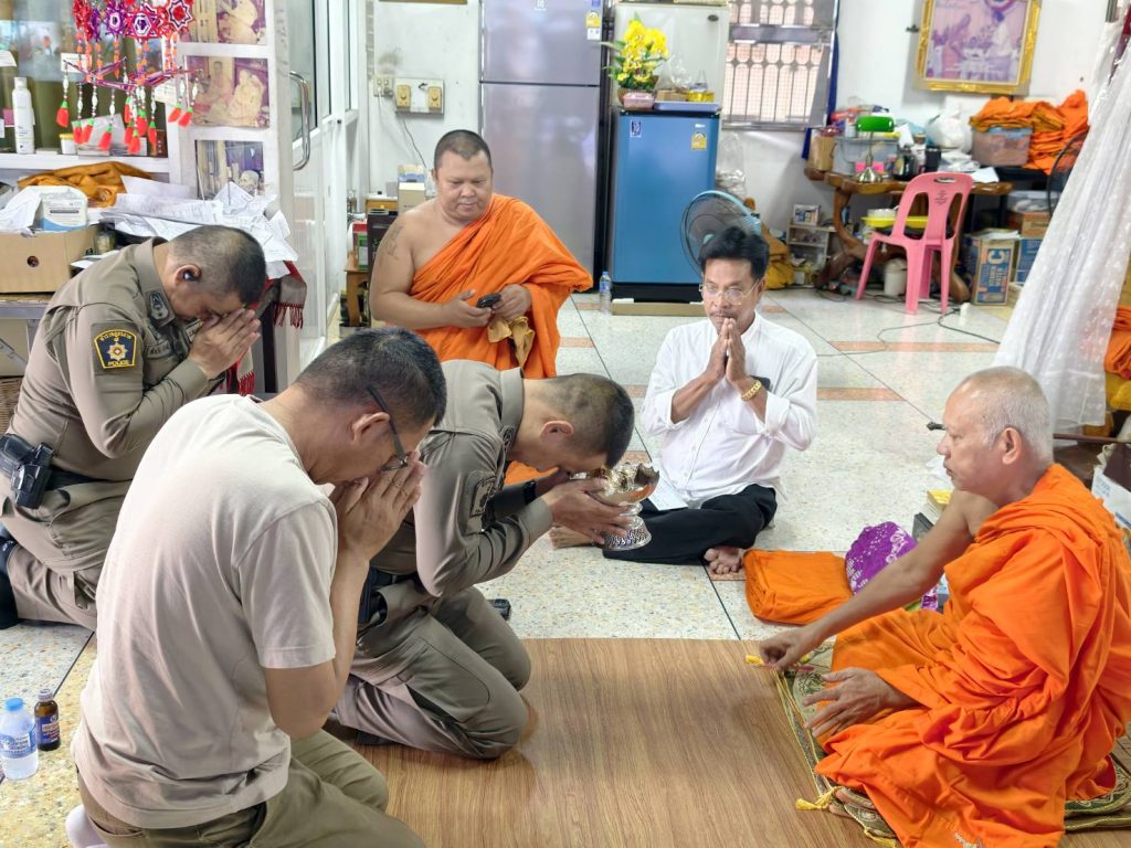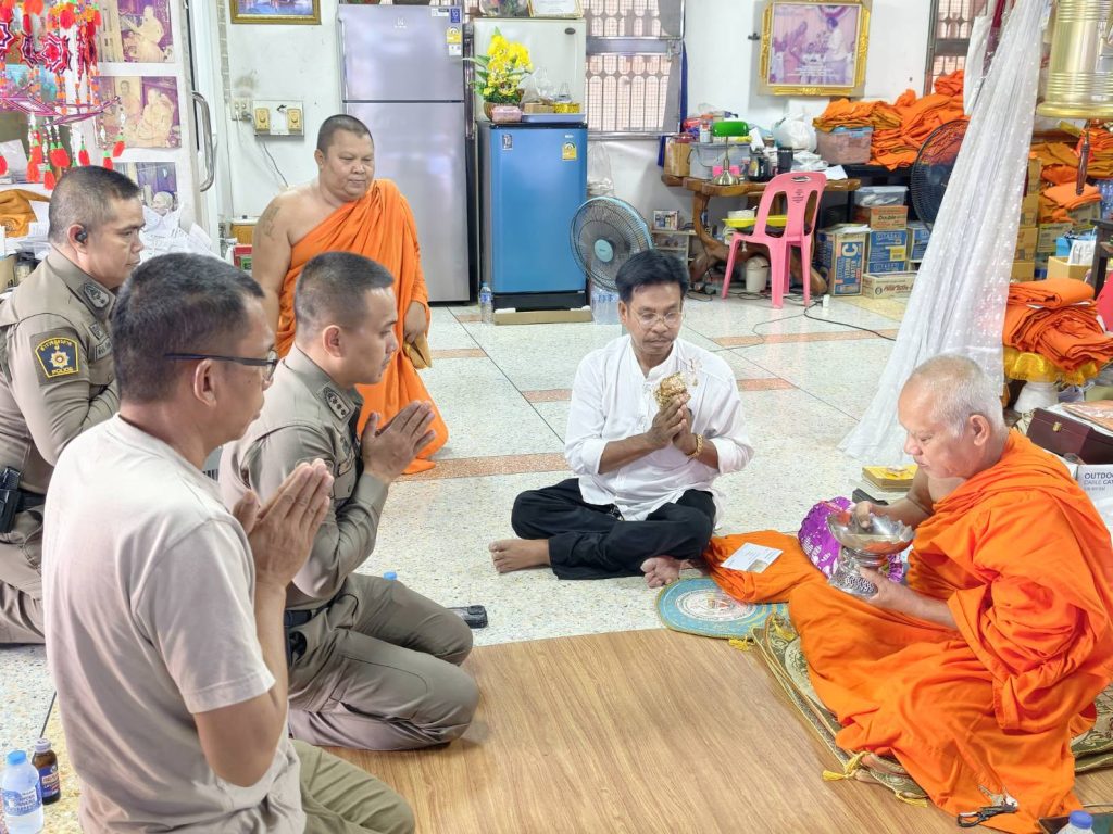 🔷️ พ.ต.อ.สิทธิพร กะสิ ผกก. สภ.เมืองสมุทรสาคร 🔷️ พ.ต.ท.สุขุม เพาะไธสง รอง ผกก.ป.สภ.เมืองสมุทรสาคร 🔷️ พ.ต.ท.สำเริง ศรีนามบุรี สวป.สภ.เมืองสมุทรสาครร่วมกับสายตรวจตู้วัดตึก🔶️เข้ากราบนมัสการ พระครูวิสุทธิ์สิทธิคุณ รองเจ้าคณะจังหวัดสมุทรสาคร เจ้าอาวาสวัดโกรกกราก🔶️เพื่อรวบรวมมวลสารโลหะศักดิ์สิทธิ์เพื่อ จัดสร้างวัตถุมงคล และพระพุทธรูปประจำ ภ.7