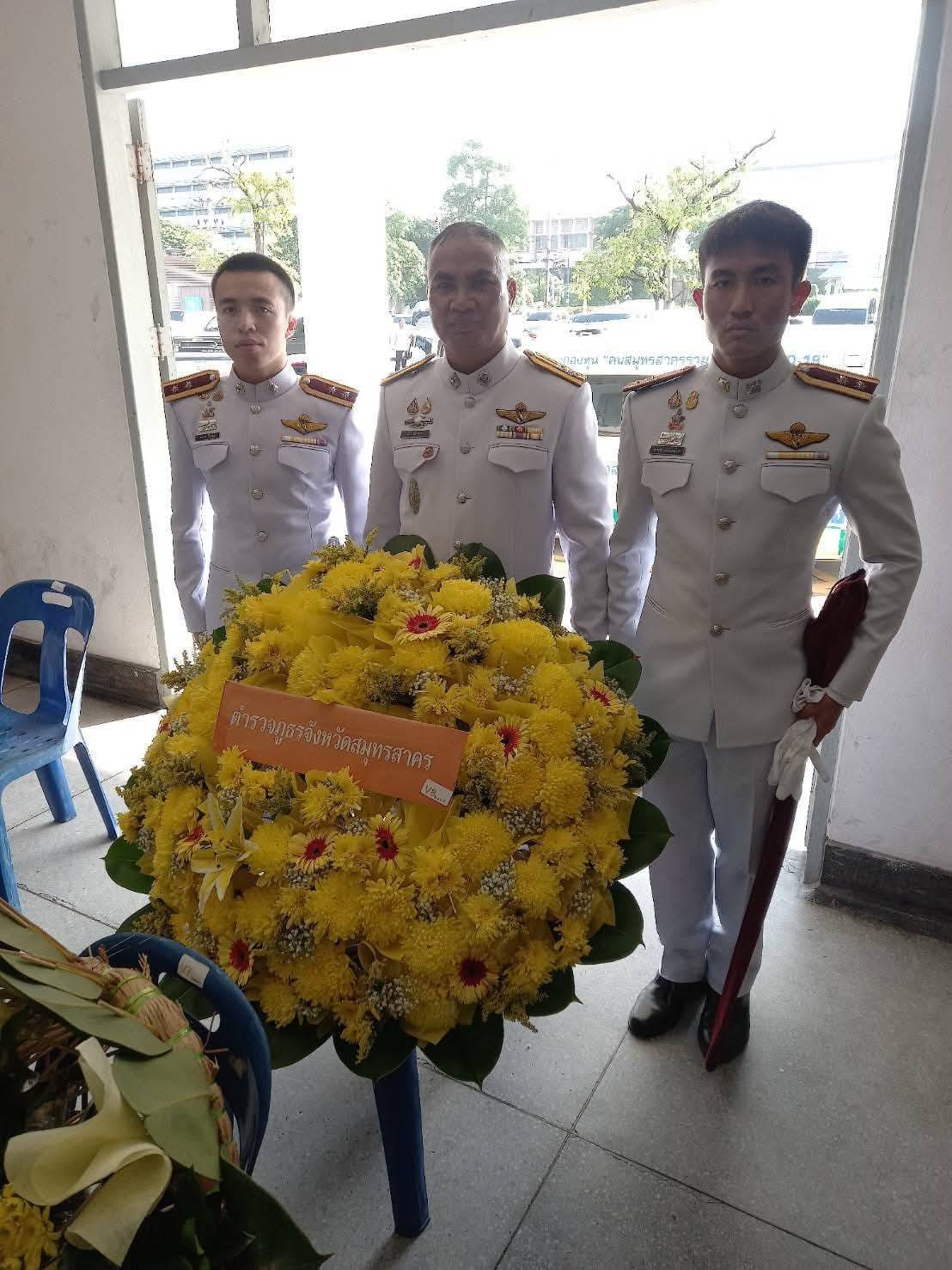 วันนี้(13 ต.ค. 67) เวลา 07.00 น. พ.ต.อ.พิเชษฐ์พงศ์ แจ้งค้ายคม ผกก.สภ.เมืองสมุทรสาคร มอบหมายให้ พ.ต.ต.สุจิน เสนาสนะ สวป.(ชส.)สภ.เมืองสมุทรสาคร พร้อมด้วยหัวหน้าส่วนราชการหน่วยต่างๆในจังหวัดสมุทรสาคร ร่วมกิจกรรมพิธีทำบุญตักบาตรถวายพระราชกุศล และพิธีวางพวงมาลา เนื่องในวัน นวมินทรมหาราช (ร.9) ณ ลานสาครบุรี ศาลากลางจังหวัดสมุทรสาครโดยมี นายวรณัฐ หนูรอด รองผู้ว่าราชการจังหวัดสมุทรสาคร (รักษาราชการแทนผู้ว่าราชการจังหวัด) เป็นประธานในพิธี