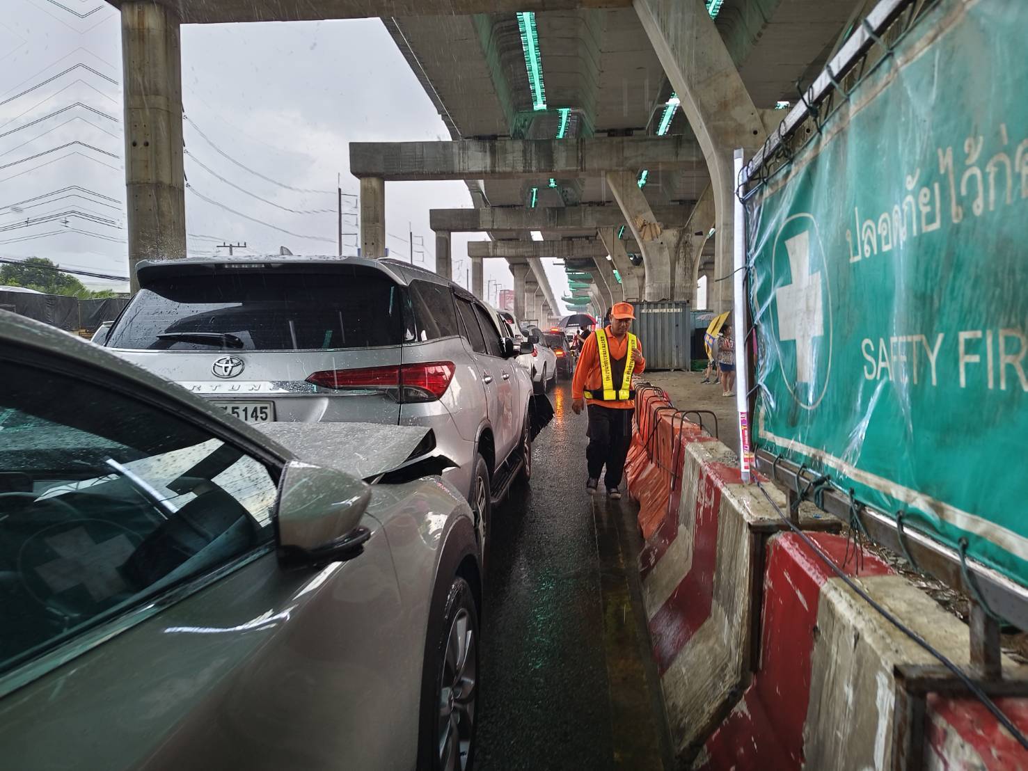4.รถยนต์ ชนท้ายกัน จำนวน 6 คัน ไม่มีผู้ได้รับบาดเจ็บ