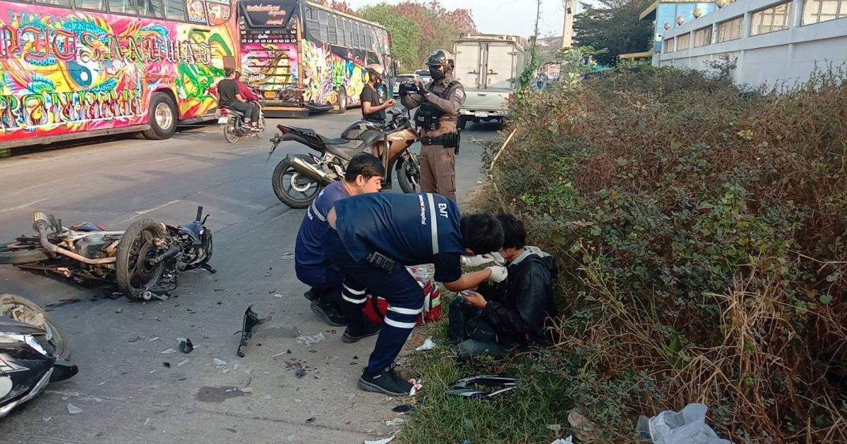 เมื่อวันที่ 3 ม.ค.68 เวลาประมาณ 07.50 น. ร.ต.ท.สามารถ ติงหวัง รอง สว.(สอบสวน)สภ.เมืองสมุทรสาคร พนักงานสอบสวน ได้รับแจ้งเหตุรถจักรยานยนต์เฉี่ยวชนกับรถจักรยานยนต์มีผู้ได้รับบาดเจ็บ ภายในซอยทรัพย์มหาโชค ม.3 ต.นาดี อ.เมือง จ.สมุทรสาคร จึงออกเดินทางไปตรวจที่เกิดเหตุ