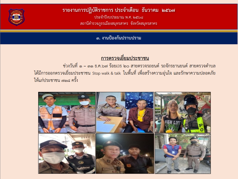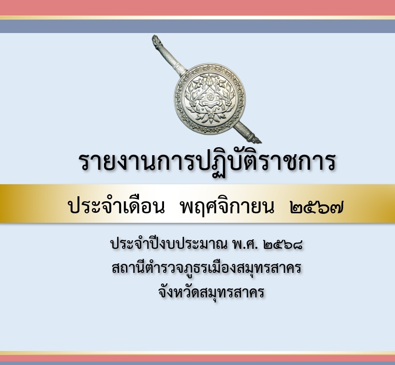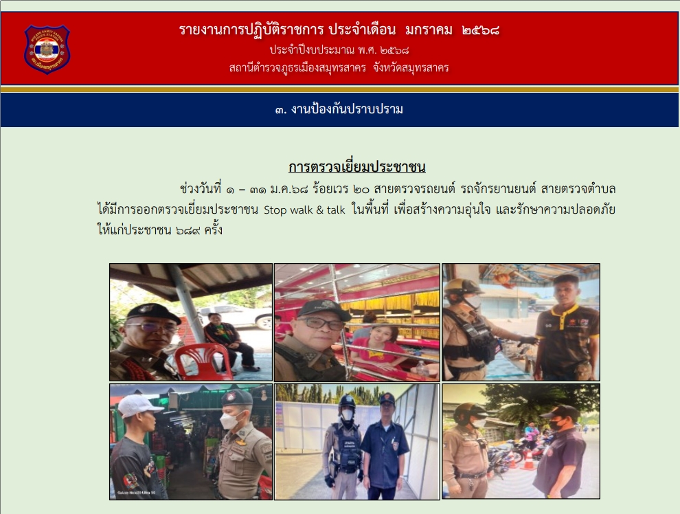 สภ.เมืองสมุทรสาคร เรียน ผู้บังคับบัญชา โปรดทราบ วันที่ 24 มกราคม 68 เวลา 13.15 น. พ.ต.ท.โสภาส ถนนทิพ